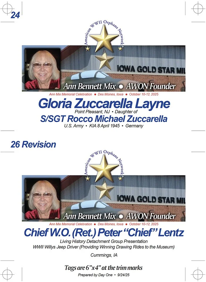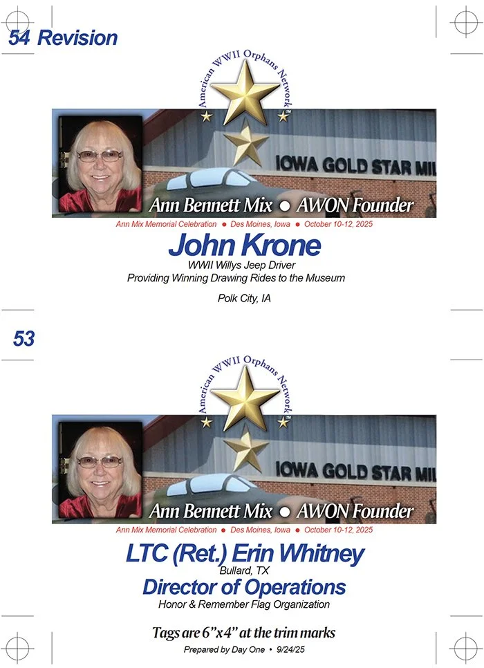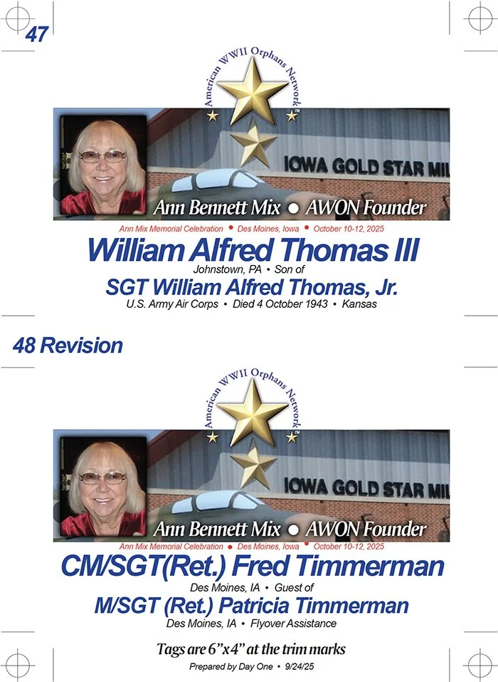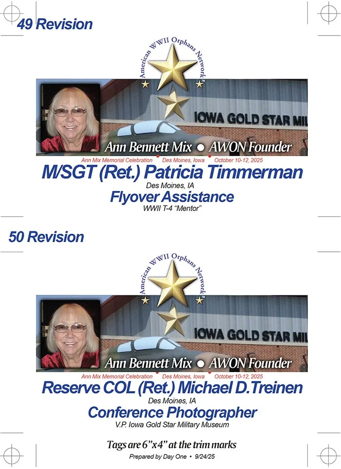 The tags will be 6” x 4” ~ to fit the tag holders that Walt will bring.